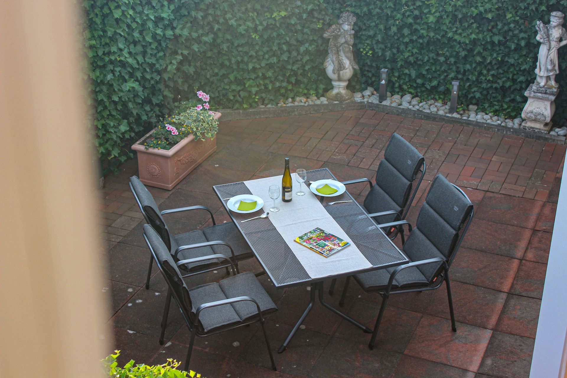 - große Terrasse mit Gartenmöbeln zur Süd-Seite